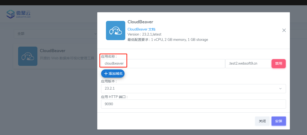 • 域名:若已提前配置全局域名此处会自动产生的子域名(可禁用),也支持额外增加域名